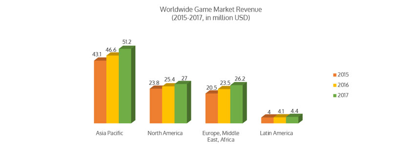Consistent with a wide range of relevant reports carried out in the field, more than 2.5 billion people take part in video gaming in one form or another. Surprisingly enough, the video game market is forecasted to rise from US$78.61 billion in 2017 to US$90 billion by 2020. With revenue of USD $51.2 billion in Asia Pacific, which represents the largest gaming market for 2017.