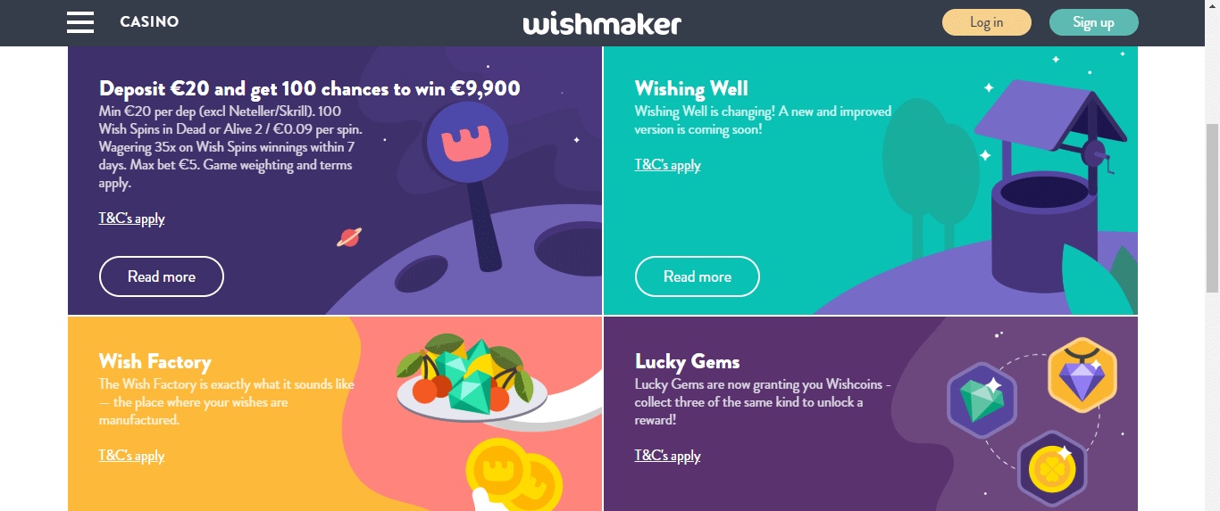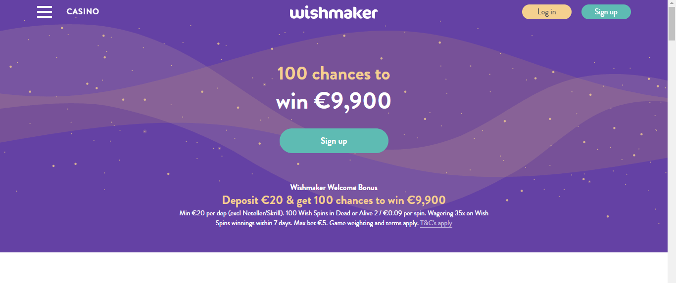 Wishmaker Welcome Bonus: Deposit €20 & get 100 chances to win €9,900